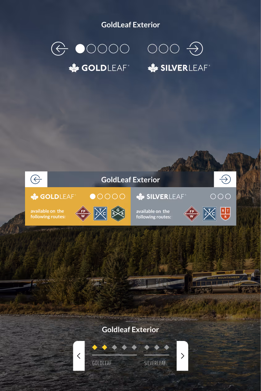 A central design goal was to clearly communicate the differences between the SilverLeaf and GoldLeaf service levels while maintaining a clean and intuitive interface. Because the audience for luxury rail travel often includes older travelers, the UI/UX was designed to be simple, accessible, and easy to navigate, ensuring the experience remains engaging without overwhelming the user.